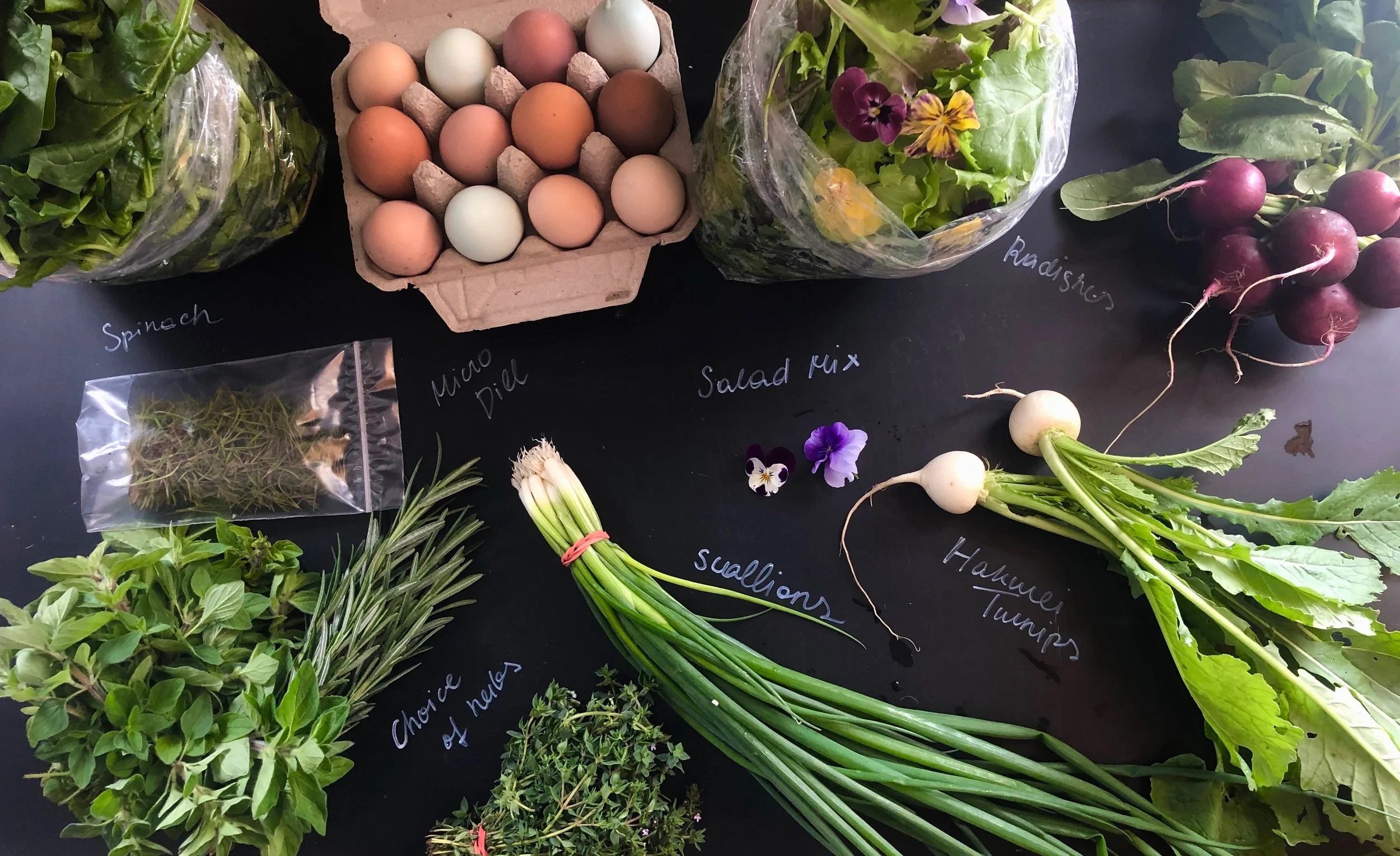 It’s Easter week and we have a delightfully fresh CSA box to base your meals around. Herbs and eggs abound, so keep reading for your new favorite deviled egg recipe (with the option to make it truly from scratch by reserving a few yolks to whip up some homemade mayo! you don’t know what mayonnaise can truly be until you’ve made your own), a customizable quiche recipe, and a couple non-Easter options for those among us who don’t celebrate.