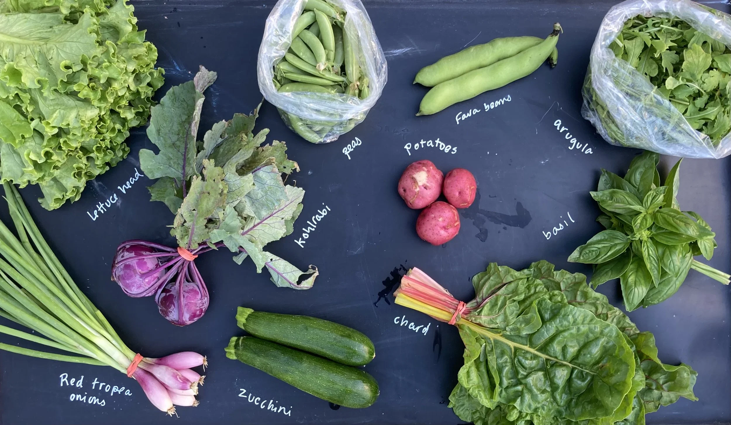 Hey everyone! My name is Alex and I have been working as the harvest lead this season. With the heat of summer in full swing, it has been a busy last month. During the week, I get to enjoy working with a crew that has become like family. We enjoy Sunday meals together, going to live music, and recreating with the time we have outside of work. The highlight of this season for me has been the farm community. The teamwork and dedication each person puts into the farm is what makes this place so special and I cannot appreciate it enough. Everyone supports everyone and we all work together to make these CSA boxes happen. This CSA box was a blast to pick, and it's a great box to make shish kabobs with! The potatoes are so tender and would go great on a stick over the grill with the zucchini, kohlrabi, and red tropea onions. The beauty of the classic shish kabob is that each one can be unique, and you can experiment easily with your favorite seasoning combinations!