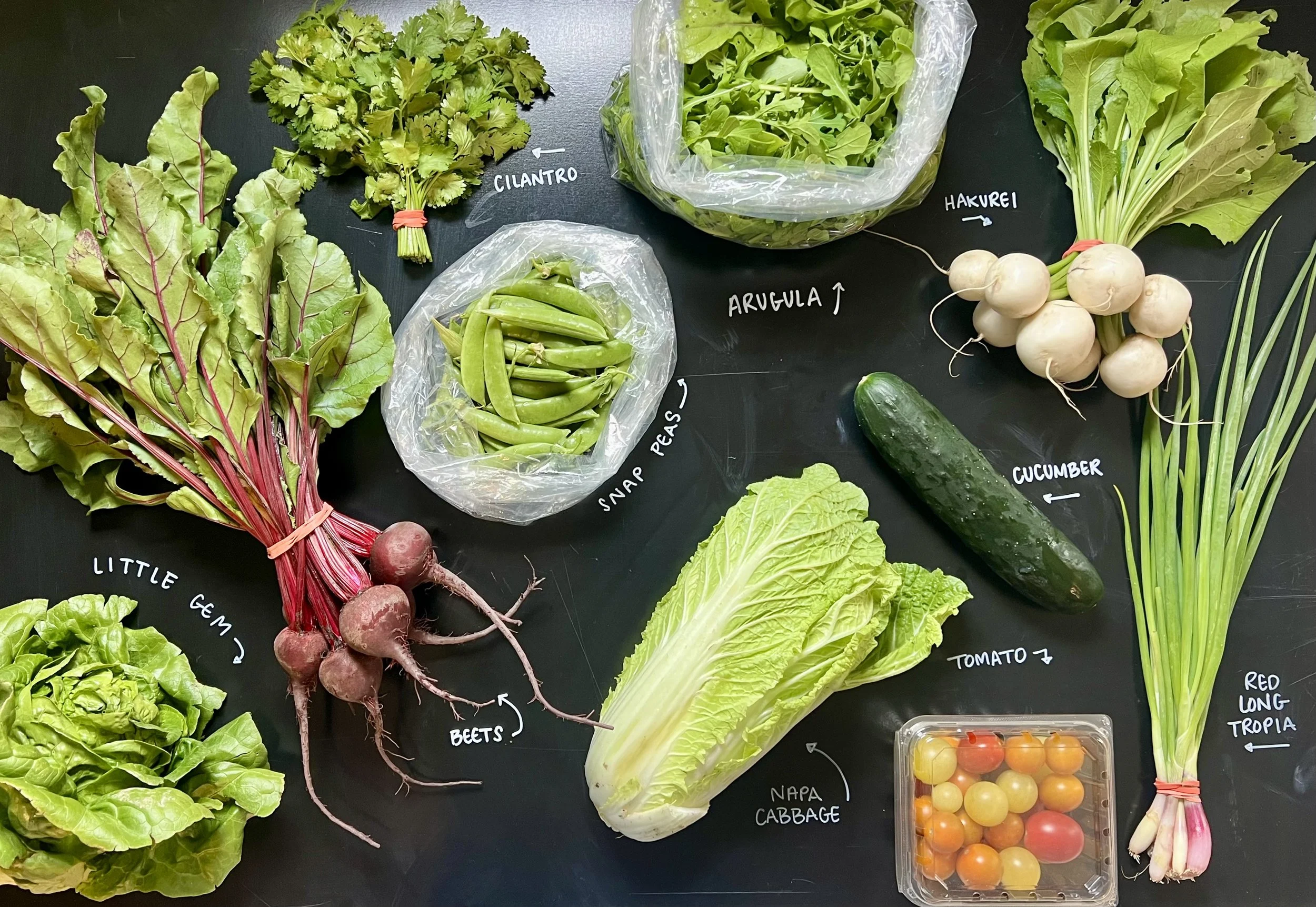 Half Share: Arugula, Little Gem, Napa Cabbage, Beets, Cucumber, Snap Peas, Cilantro